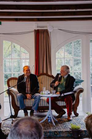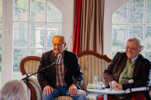 Als gebürtiger Schotte las Martin Walker auf Englisch spannende Passagen aus dem „Troubadour“ und Gastgeber Friedrich-Michael von Schiller übersetzte sie im Anschluss auf Deutsch. Schon bald wurde aus den beiden ein eingespieltes Duo, die mit Humor, Unterhaltung und Spannung durch den Abend leiteten.
