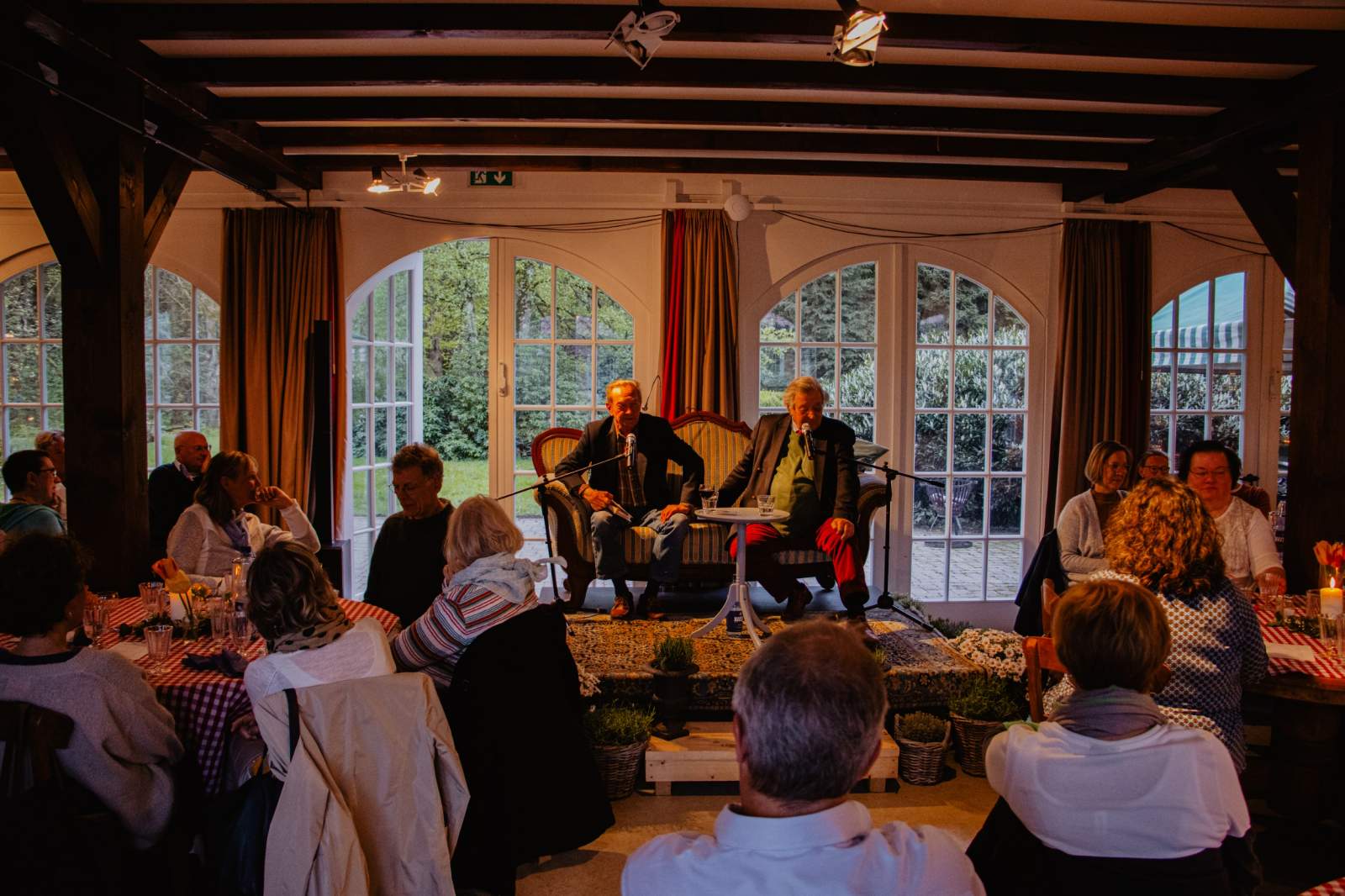 Bereits 2017, bei seiner letzten Lesung im LandPark, sorgte Martin Walker für eine ausverkaufte „Orangerie“ mit begeisterten Gästen und auch diesmal war auch der letzte Platz rund um das lauschige Sofa auf dem der Autor und sein „Übersetzer“ Friedrich-Michael von Schiller Platz genommen hatten, restlos ausverkauft.