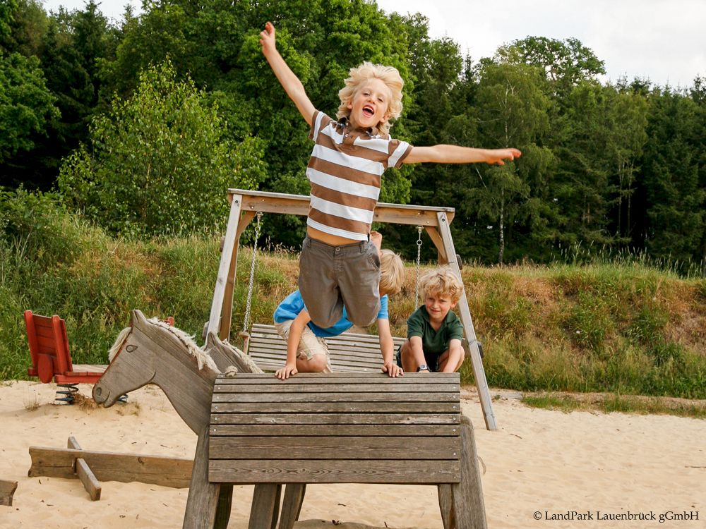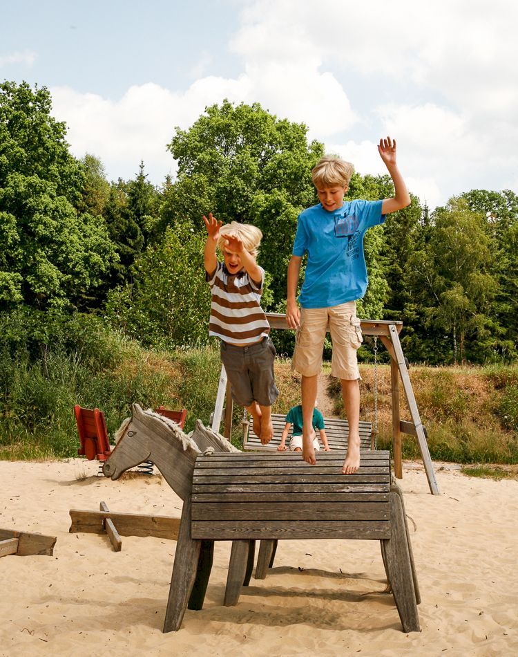 Auf unserem Sandspielplatz können auch die Kleinsten zum Entdecker werden. Ein riesiger Sandberg lädt zum Schaufeln, Buddeln und Graben ein. Umringt von Holzpferden und Häuschen zum Erkunden sind der Kreativität keine Grenzen gesetzt. Und sollte doch mal etwas in die Hose gehen, steht unser Wickelhäuschen in unmittelbare Nähe für Sie bereit.